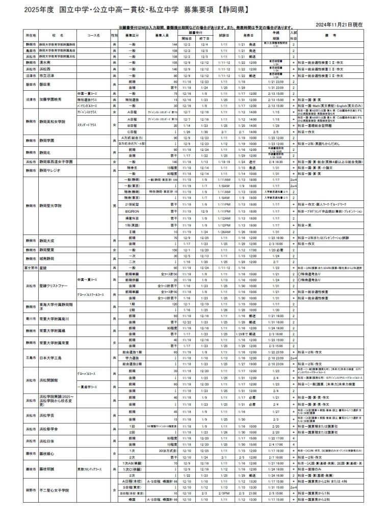 静岡県内の中学・高校・大学の願書受付や試験日程を、