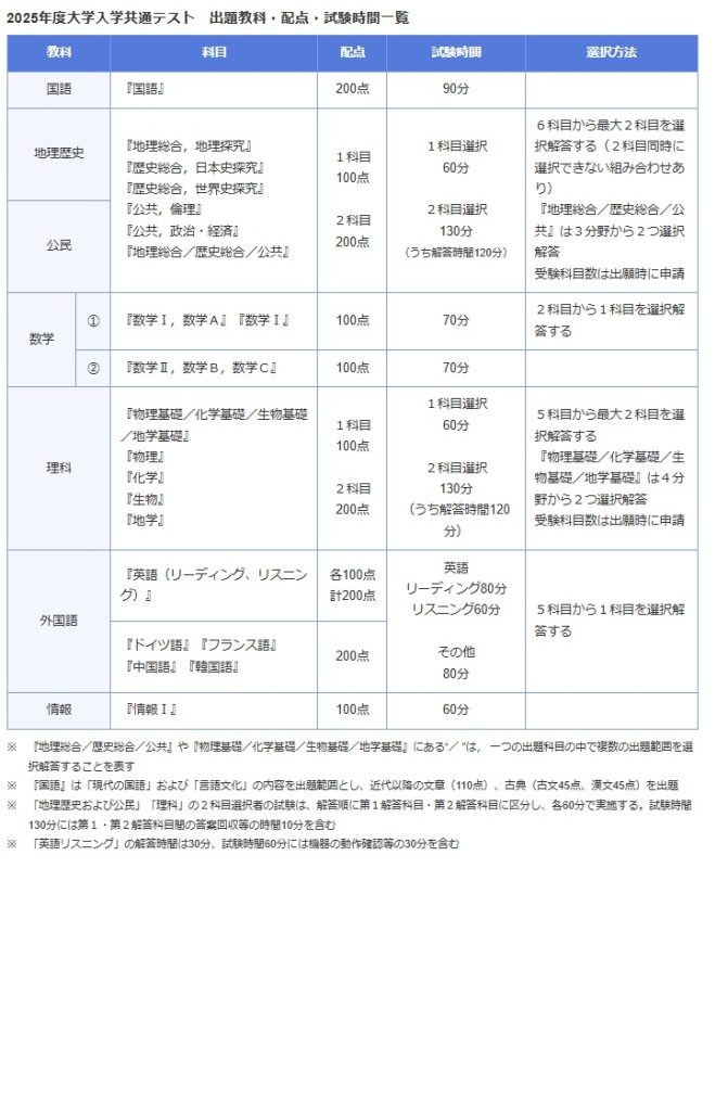 試験日:2025.1/18、1/19※追試験1/25、1/26