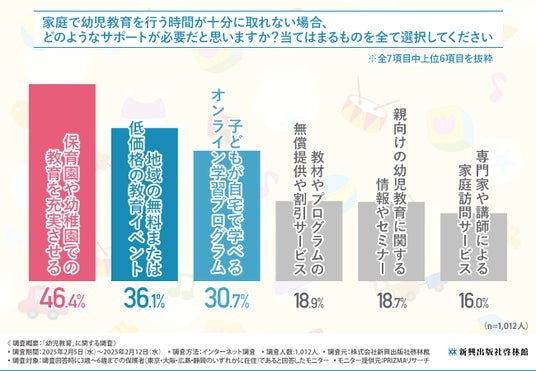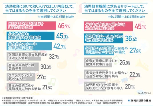 株式会社新興出版社啓林館は、3歳~6歳までの保護者(東京・大阪・広島・静岡のいずれかに在住)の方を対象に、「幼児教育」に関する調査を実施しました。
