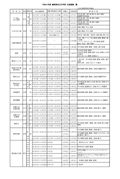 令和6年(2024年) 静岡県の私立中学の試験日程一覧です。