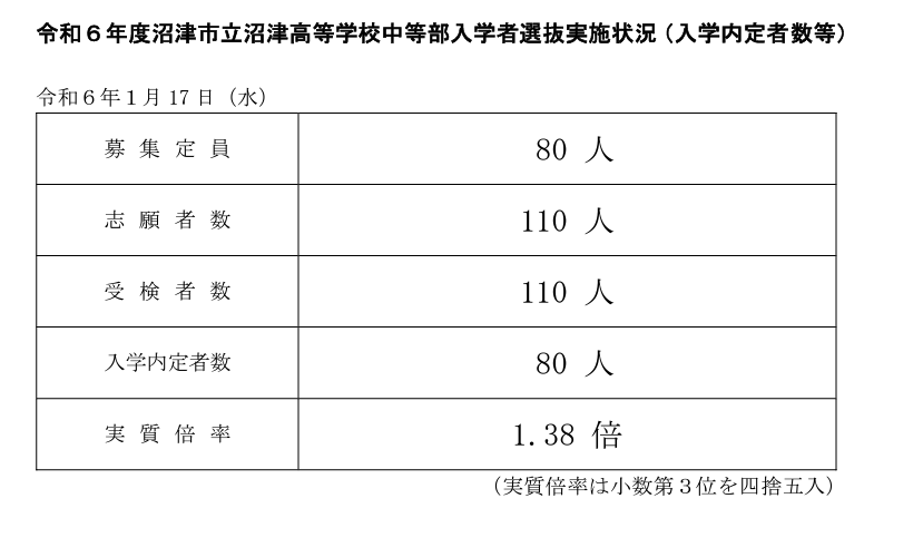 令和6年度沼津市立沼津高等学校中等部入学者選抜実施状況(入学内定者数等)が公表されています。 県立高等学校中等部入学者選抜関係https://www.pref.shizuoka.jp/kodomokyoiku/sch […]